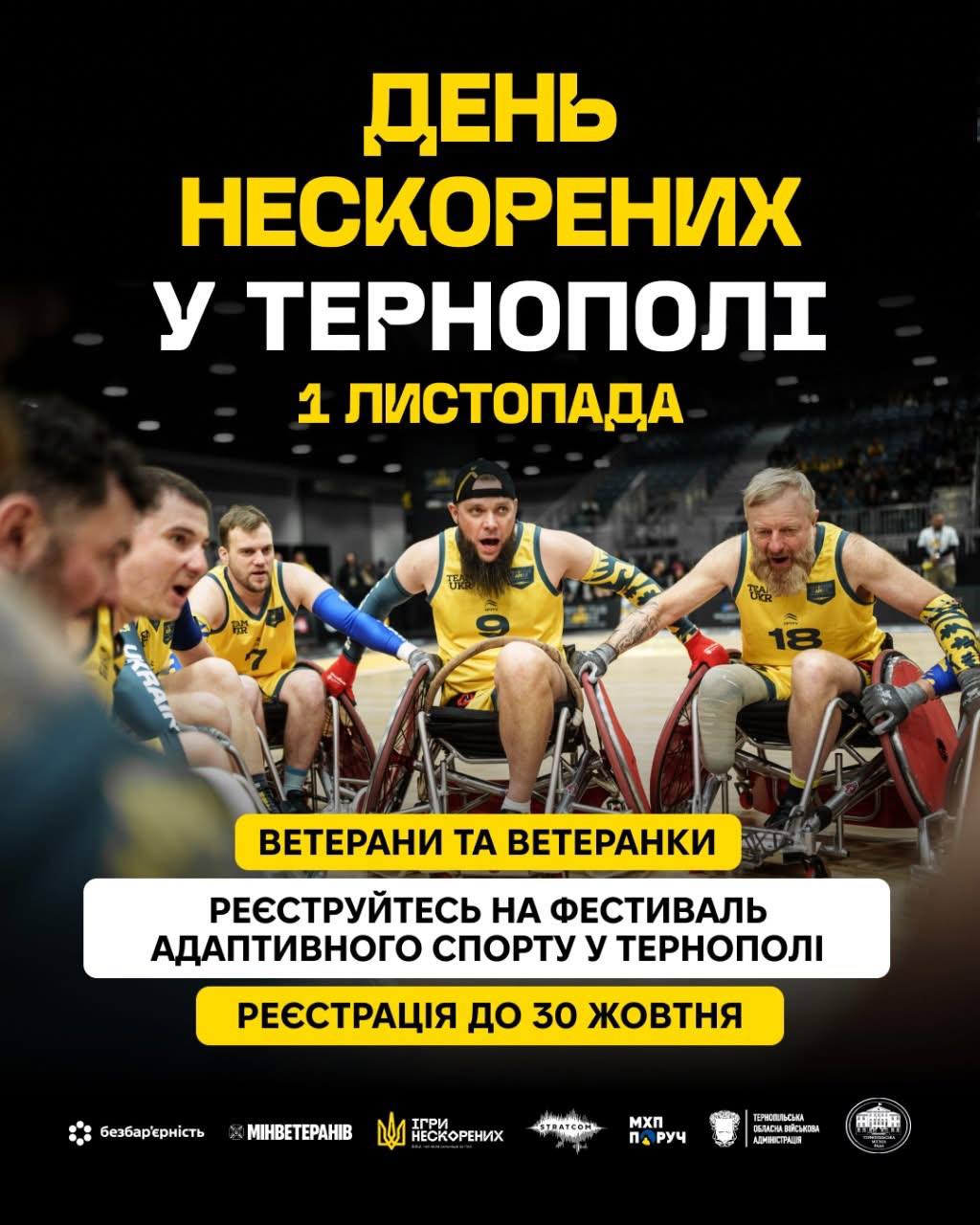 Запрошуємо ветеранів та їхніх близьких приєднатися до «Дня Нескорених» у Тернополі та відчути силу спорту, яка об’єднує!
