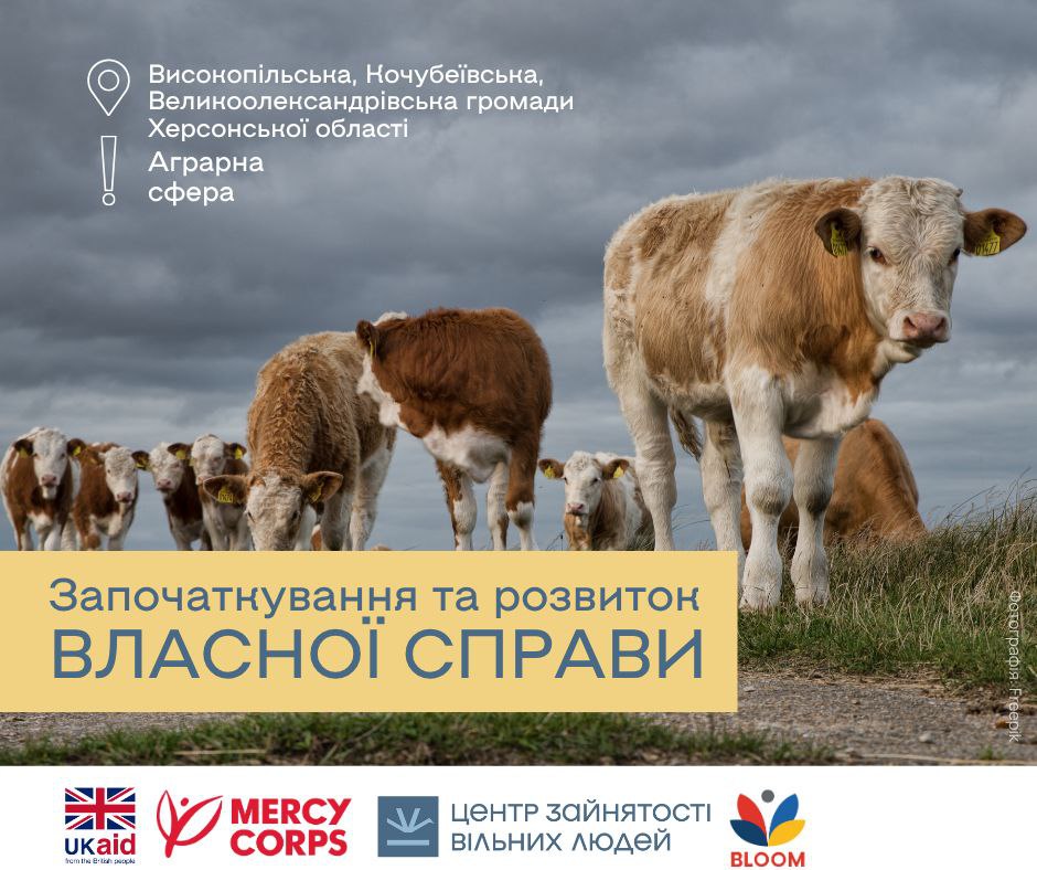 ВПО та місцеві мешканці Високопільської, Кочубеївської та Великоолександрівської громад Херсонської області можуть отримати від $1000 до $5000 (у гривнях) на запуск або відновлення бізнесу в агросфері.
