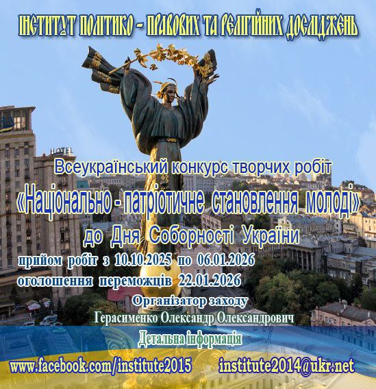 З нагоди відзначення Дня Соборності України Інститутом політико-правових та релігійних досліджень ініційовано старт щорічного Всеукраїнського конкурсу.