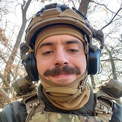 Водій 1-ї обслуги гармати 1-го гаубичного артилерійського взводу 1-ї гаубичної артилерійської батареї 1-го гаубичного артилерійського дивізіону 12-ї бригади «Азов», в/ч 3057 Національної гвардії України.