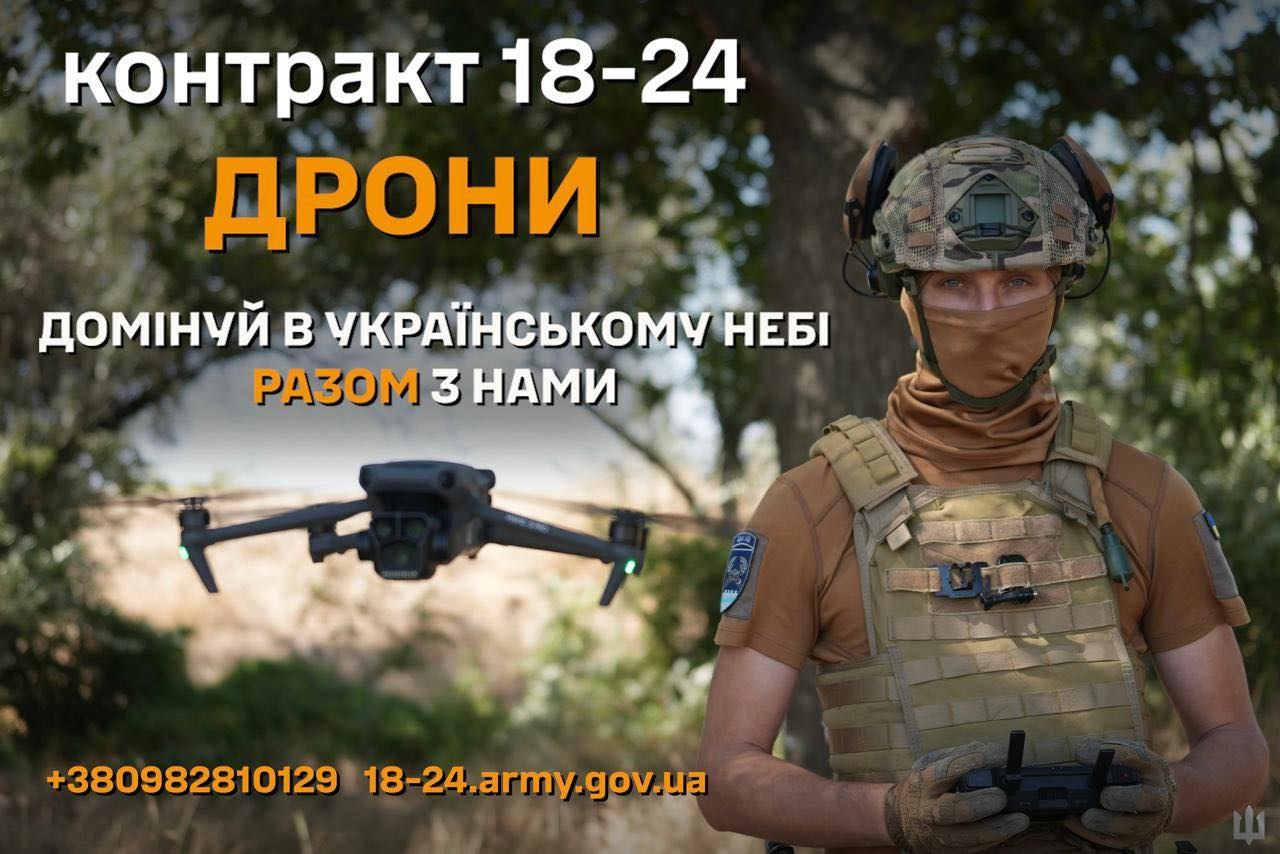 Державна програма "Контракт 18-24: дрони" — це добровільний дворічний контракт для громадян від 18 до 24 років з інтенсивним навчанням, соціальними гарантіями та гідним грошовим забезпеченням.