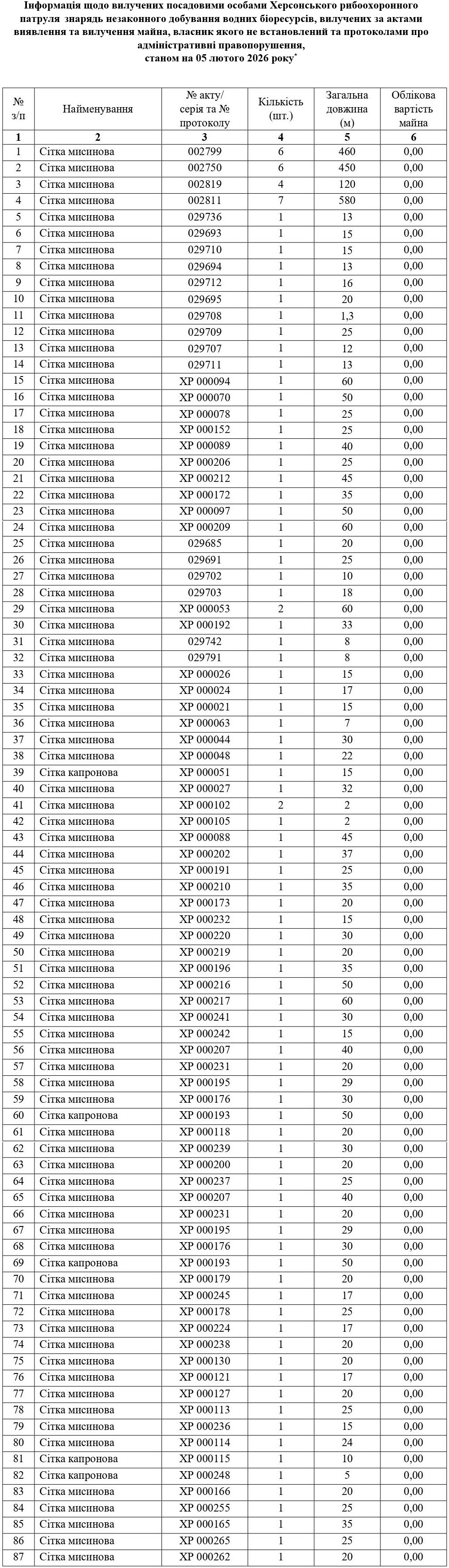 Херсонський рибоохоронний патруль інформує про вилучені знаряддя незаконного добування об’єктів тваринного світу, які тимчасово зберігаються в приміщенні Миколаївського рибоохоронного патруля.
