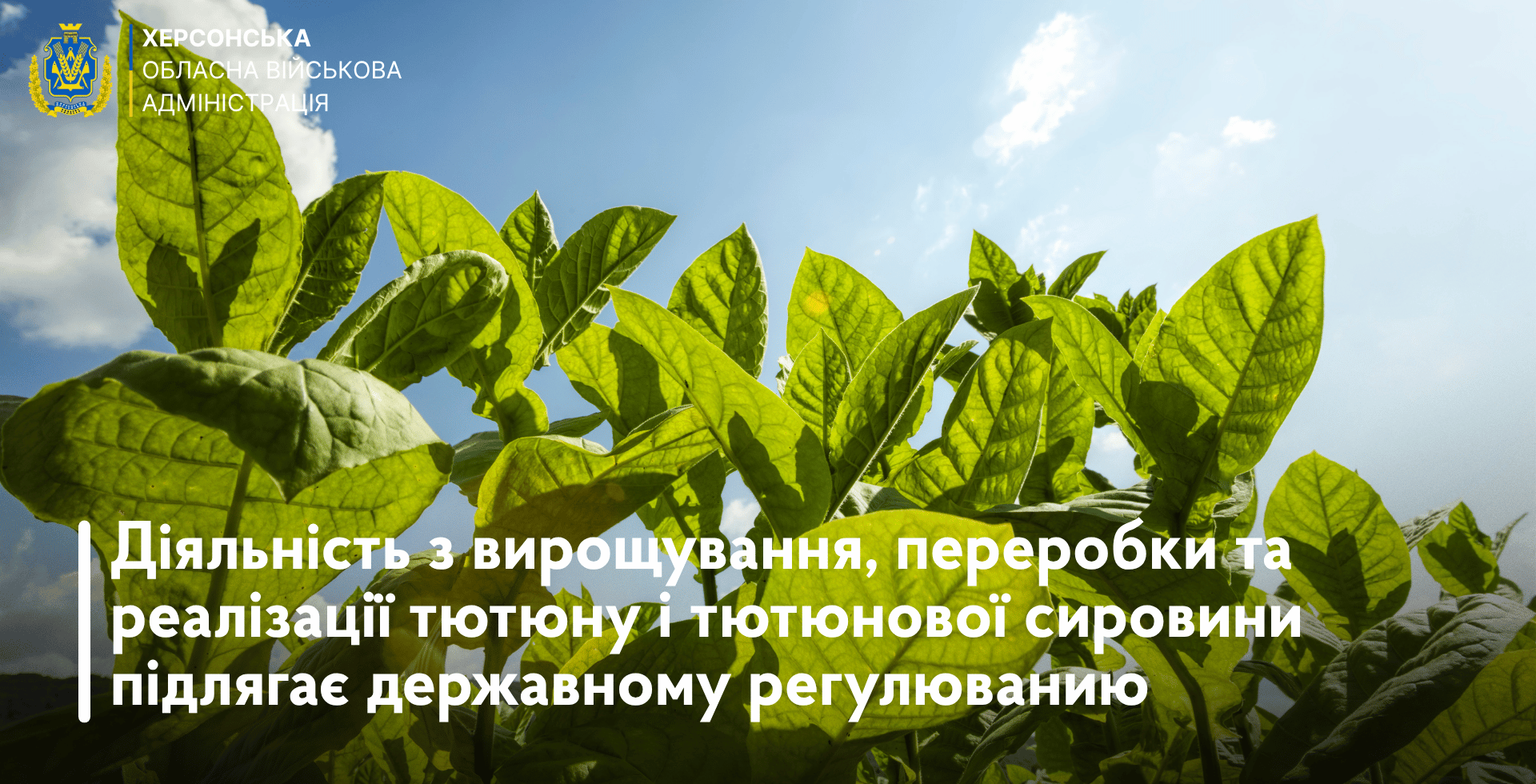 Херсонська ОВА інформує суб’єктів господарювання, землекористувачів та жителів громади про необхідність неухильного дотримання вимог законодавства України у разі здійснення діяльності, пов’язаної з вирощуванням, зберіганням, переробкою та реалізацією тютюну і тютюнової сировини.