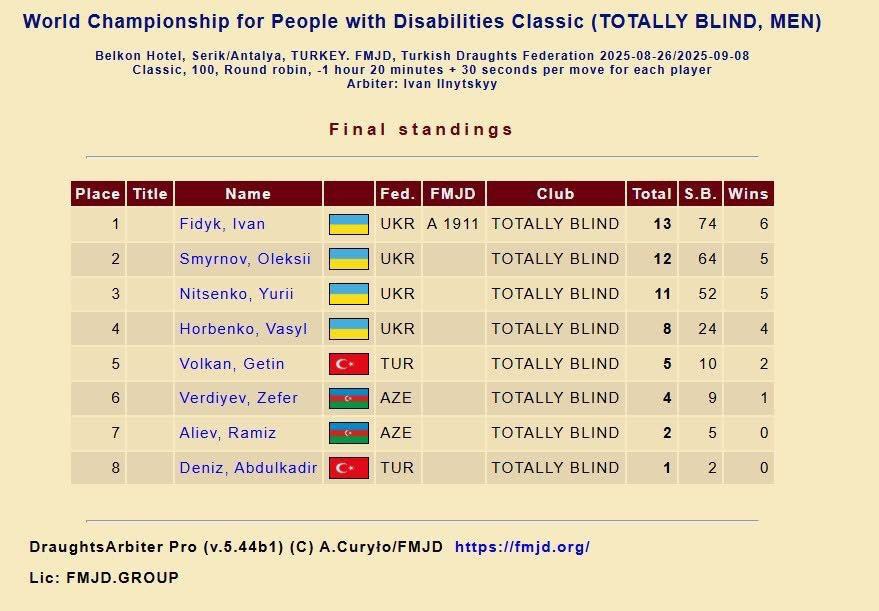 Майстер спорту України міжнародного класу та вихованець Херсонського регіонального центру "Інваспорт" посів третє місце у класичній грі серед спортсменів з порушеннями зору.