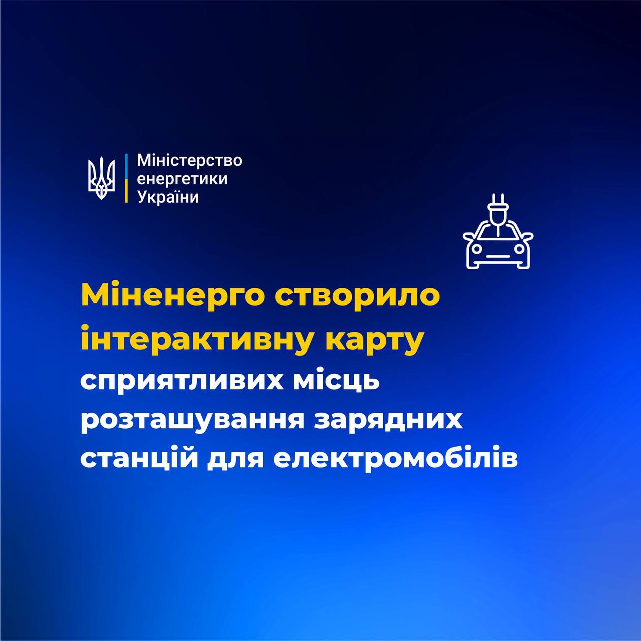 Враховуючи необхідність розвитку зарядної інфраструктури для електромобілів у зв’язку зі збільшенням їх кількості на дорогах України Міністерство енергетики України створило інтерактивну карту сприятливих місць для розташування зарядних станцій для електромобілів. При складанні карти враховувалися вимоги Регламенту (ЄС) 2023/1804 Європейського Парламенту та Ради від 13 вересня 2023 року щодо розгортання інфраструктури альтернативних видів палива та скасування Директиви 2014/94/ЄС.