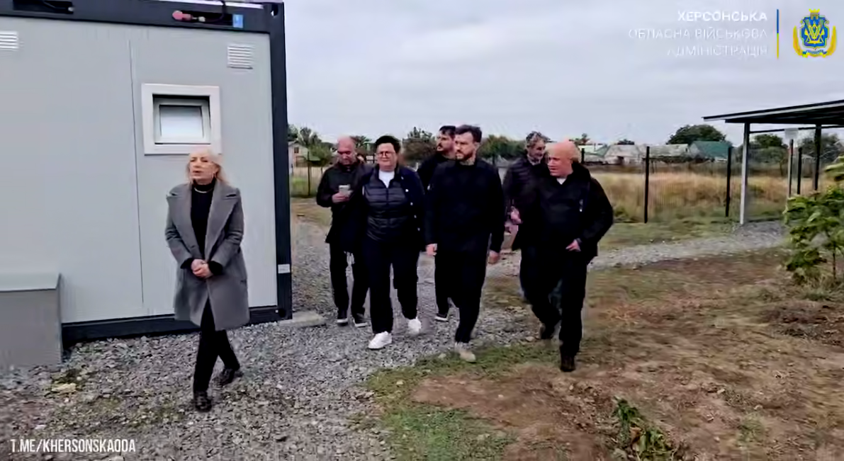Перша локація — модульне містечко у Чорнобаївській громаді. Наразі тут проживає понад дві сотні ВПО. Оглянули умови проживання та розміщення — кожен модуль укомплектований необхідною побутовою технікою та резервними джерелами електроенергії. Також тут працюють адміністратори Центру надання соціальних послуг.