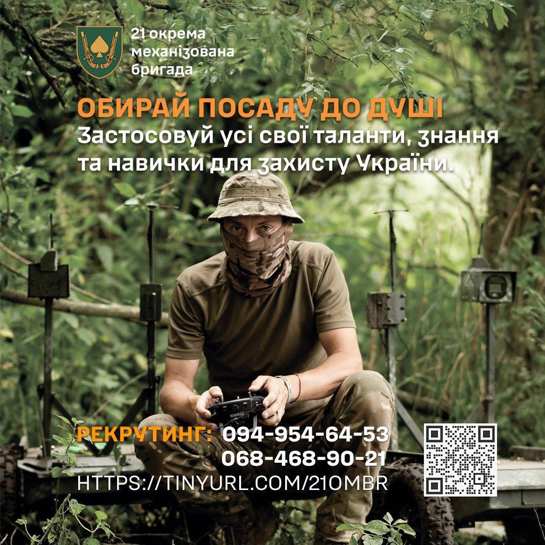 21 окрема механізована бригада запрошує на службу рішучих, мотивованих та цілеспрямованих чоловіків та жінок.