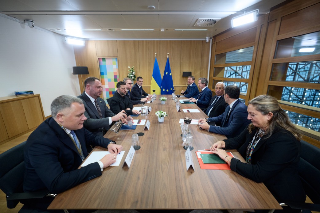 У Брюсселі Президент України Володимир Зеленський провів зустріч із Президентом Європейської ради Антоніу Коштою, щоб скоординувати позиції перед сьогоднішнім засіданням Євроради.