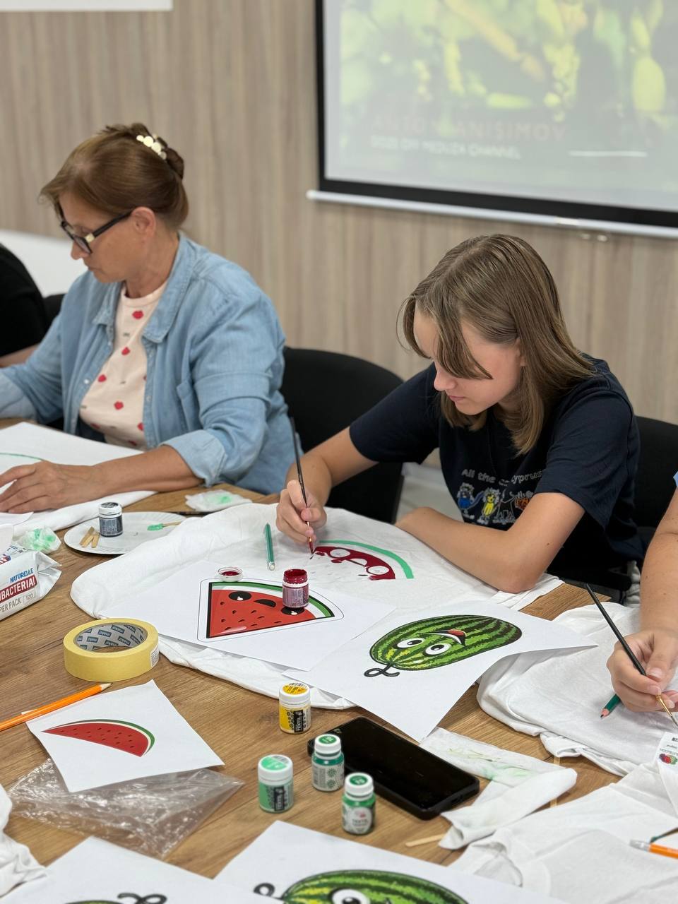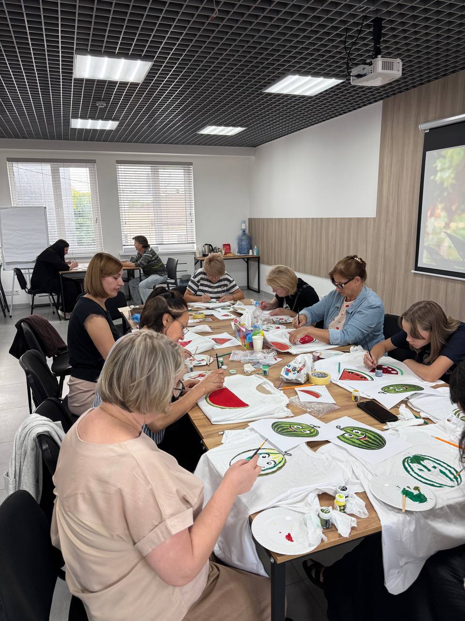 Херсонці малювали на футболках символ рідної області — кавун, вкладаючи у кожен малюнок щирість та надію на скоре повернення додому.