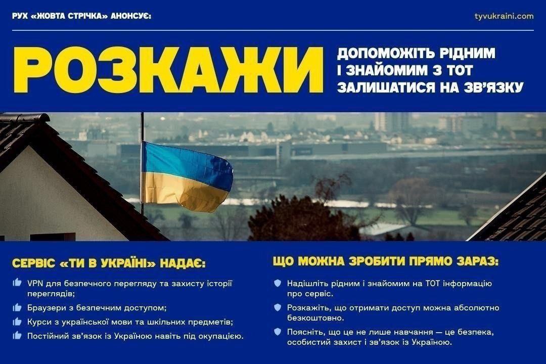 Маєте знайомих, друзів чи рідних на тимчасово окупованих територіях – передайте їм це посилання: https://tyvukraini.com/.