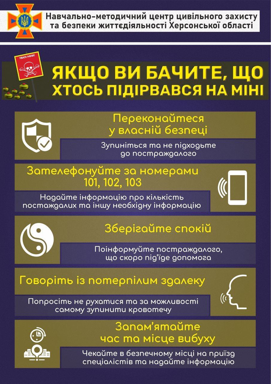 Як у цьому випадку допомогти постраждалому — дивіться у пам'ятці від Навчально-методичного центру цивільного захисту та безпеки життєдіяльності Херсонської області.