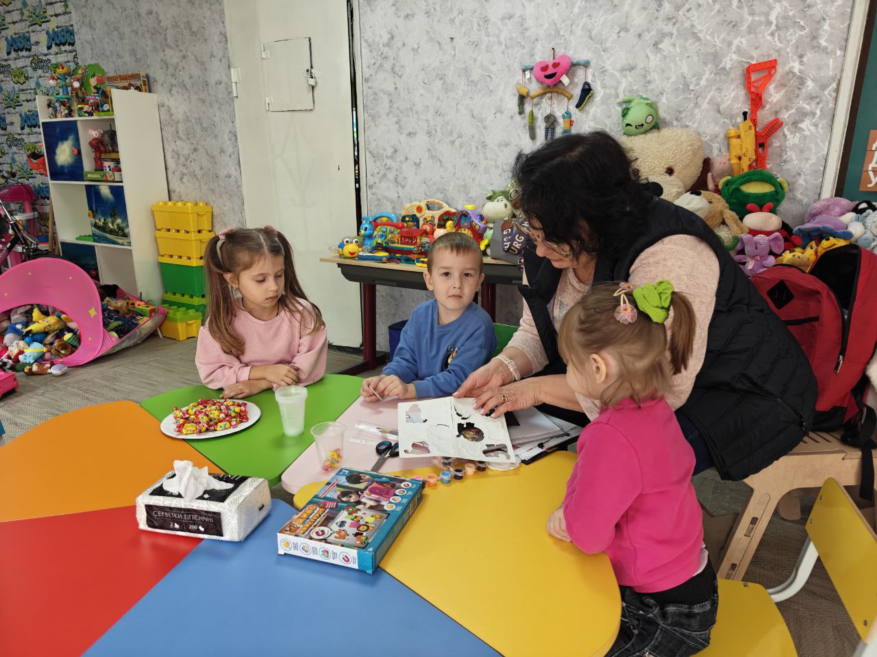 ▪️Активності для дітей і батьків. Протягом тижня відбулися творчі заняття та ігрові сесії. представники «Карітас Донецьк» провели гру «Павутинка» і майстер-клас з ліплення фігур із пластиліну для дітей. Також психологиня Medical Teams International організувала заняття для дошкільнят із виготовлення магнітів, паралельно для батьків — розмову «Як боротися зі стресом?». Серед інших заходів — творче заняття в артстудії «Веселий кавун» та тренування тенісної секції «SET» у межах проєкту «Спортивні разом».