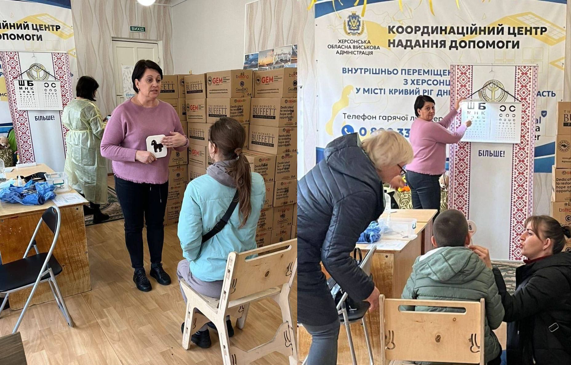 Медики консультували дітей до 14 років, чиї родини через війну вимушено покинули домівки на Херсонщині. Педіатри, хірург, лор та інші фахівці оглядали дітей, робили необхідні аналізи, УЗД та первинну діагностику.