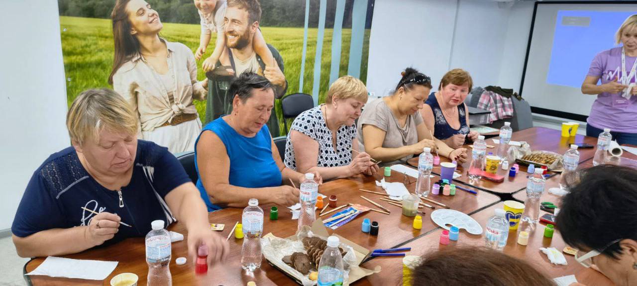 Провели арт-терапевтичні сесії, під час яких учасники розмальовували шопери та магніти для емоційного розвантаження. Крім того, відбувся семінар на тему «Самодіагностика та раннє лікування остеопорозу».