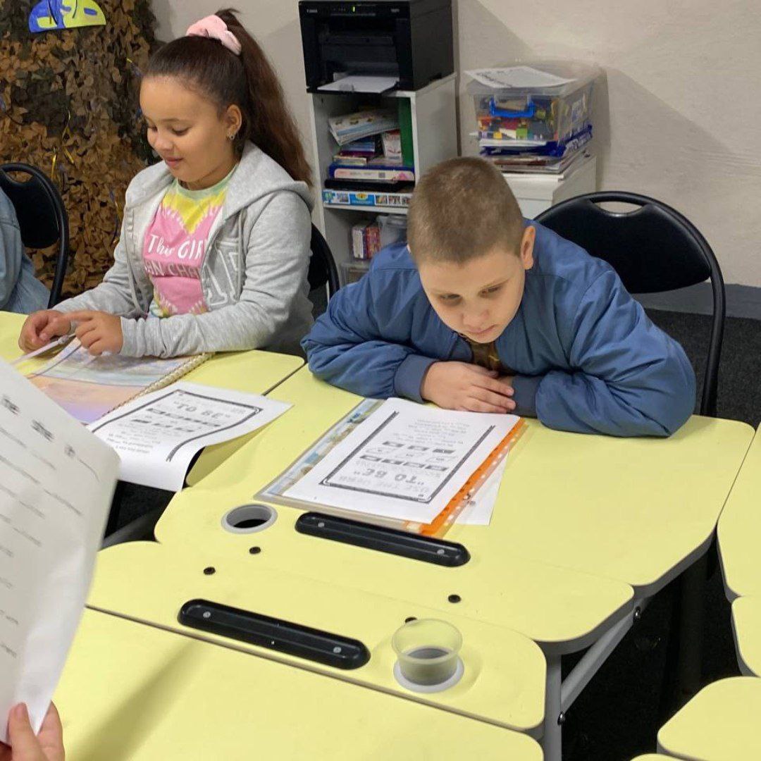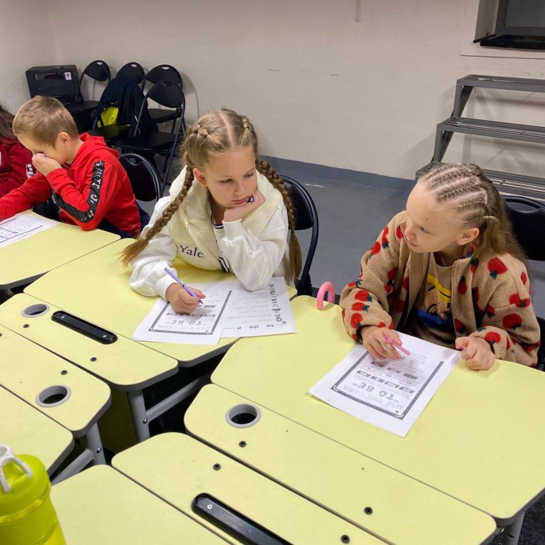 Зустрічі проходять у форматі живого спілкування з практичними завданнями, під час яких юні учасники працюють над граматикою та розширенням словникового запасу.