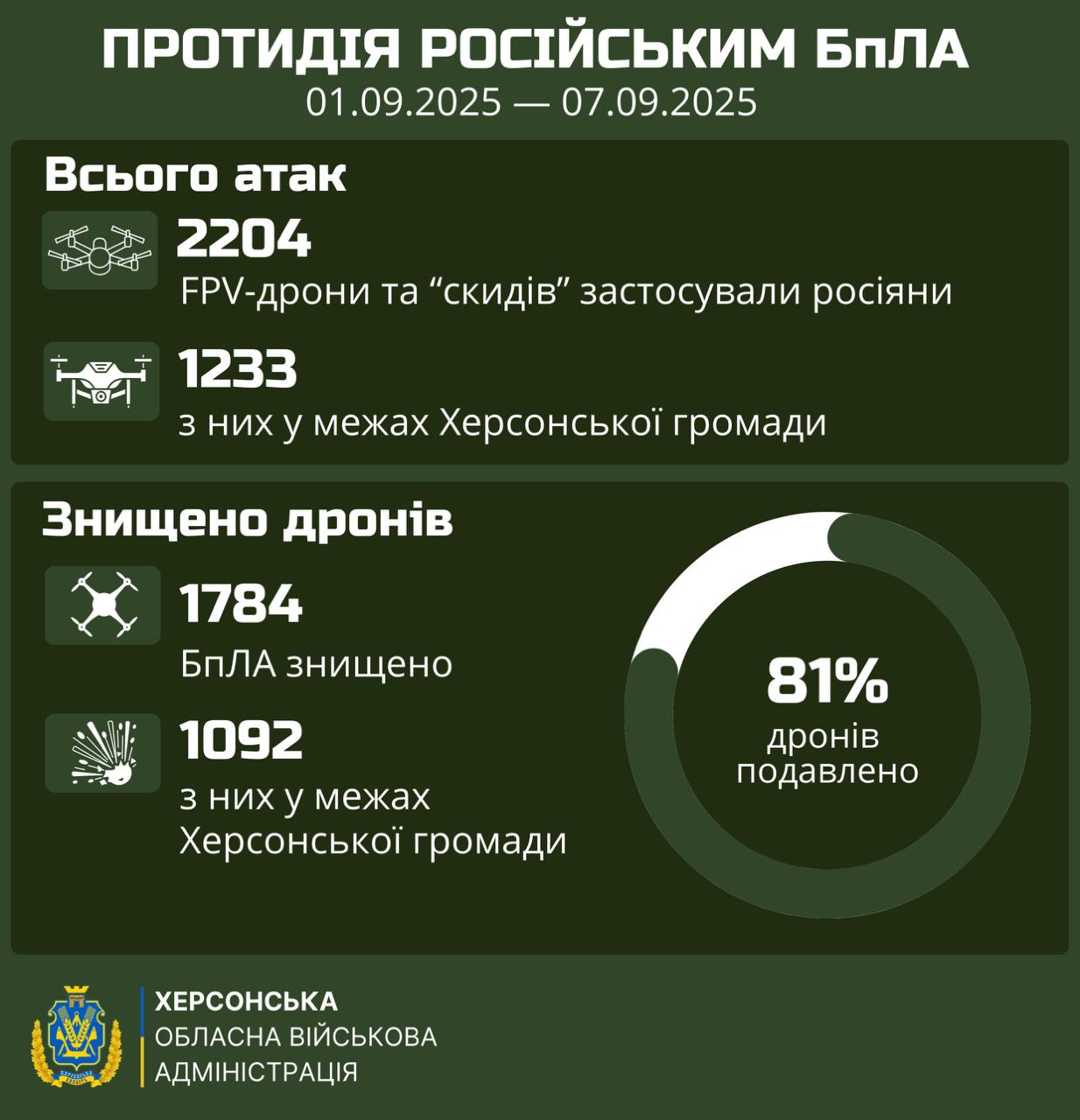 Лише за минулий тиждень нашим військовим вдалося приземлити майже 1800 ворожих БпЛА. Це кожен четвертий з п’яти дронів, які росіяни запускали по мирних населених пунктах області.
