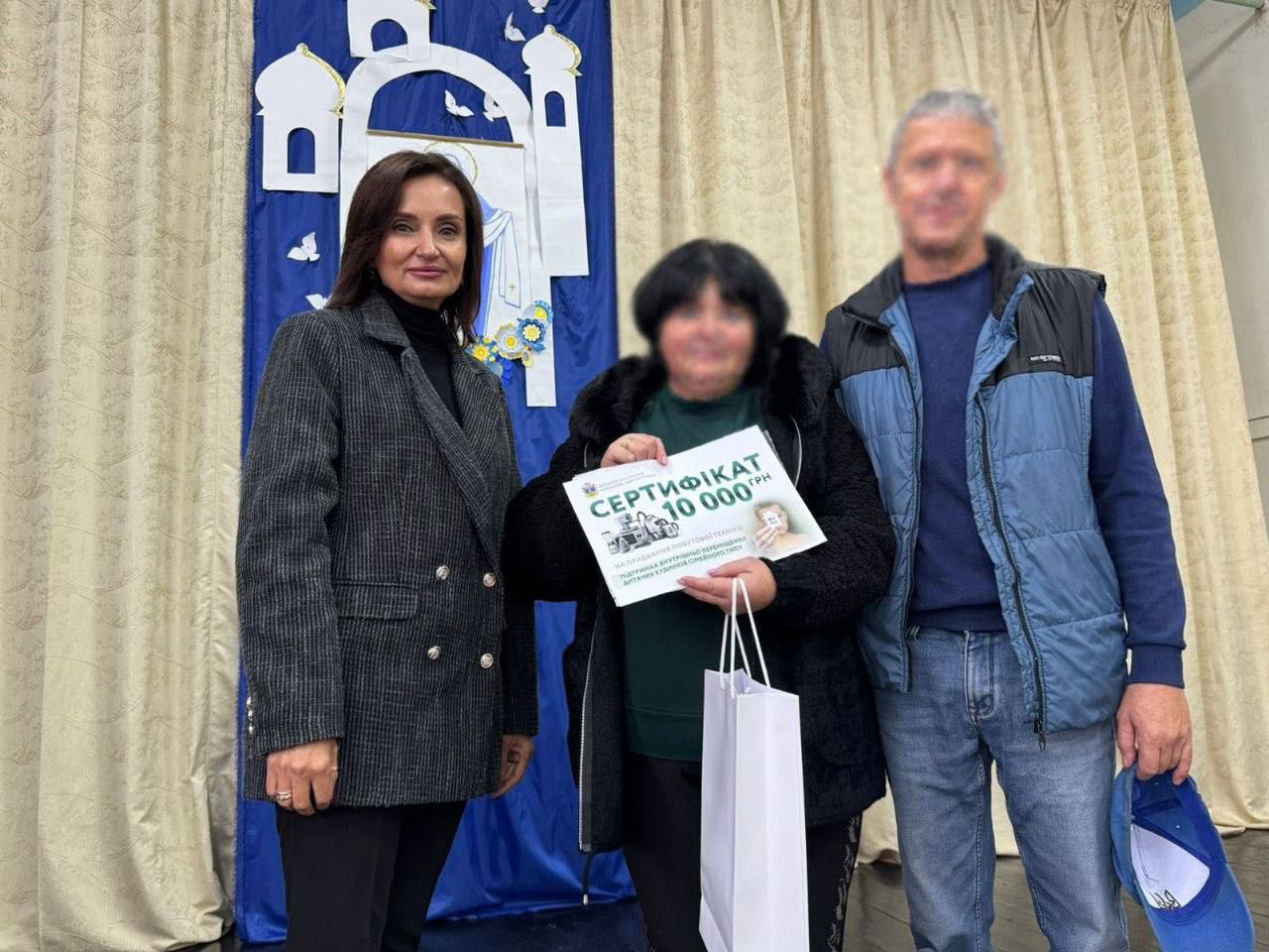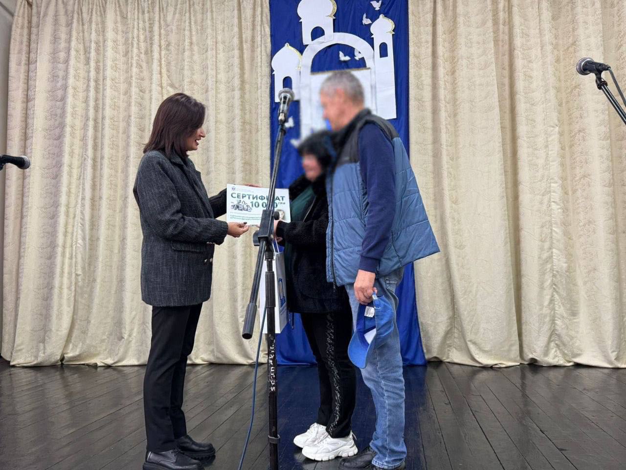 Начальниця Олешківської міської військової адміністрації Тетяна Гасаненко передала сертифікат на 10 000 гривень дитячому будинку сімейного типу. Кошти сім’я зможе використати для придбання необхідної побутової техніки.