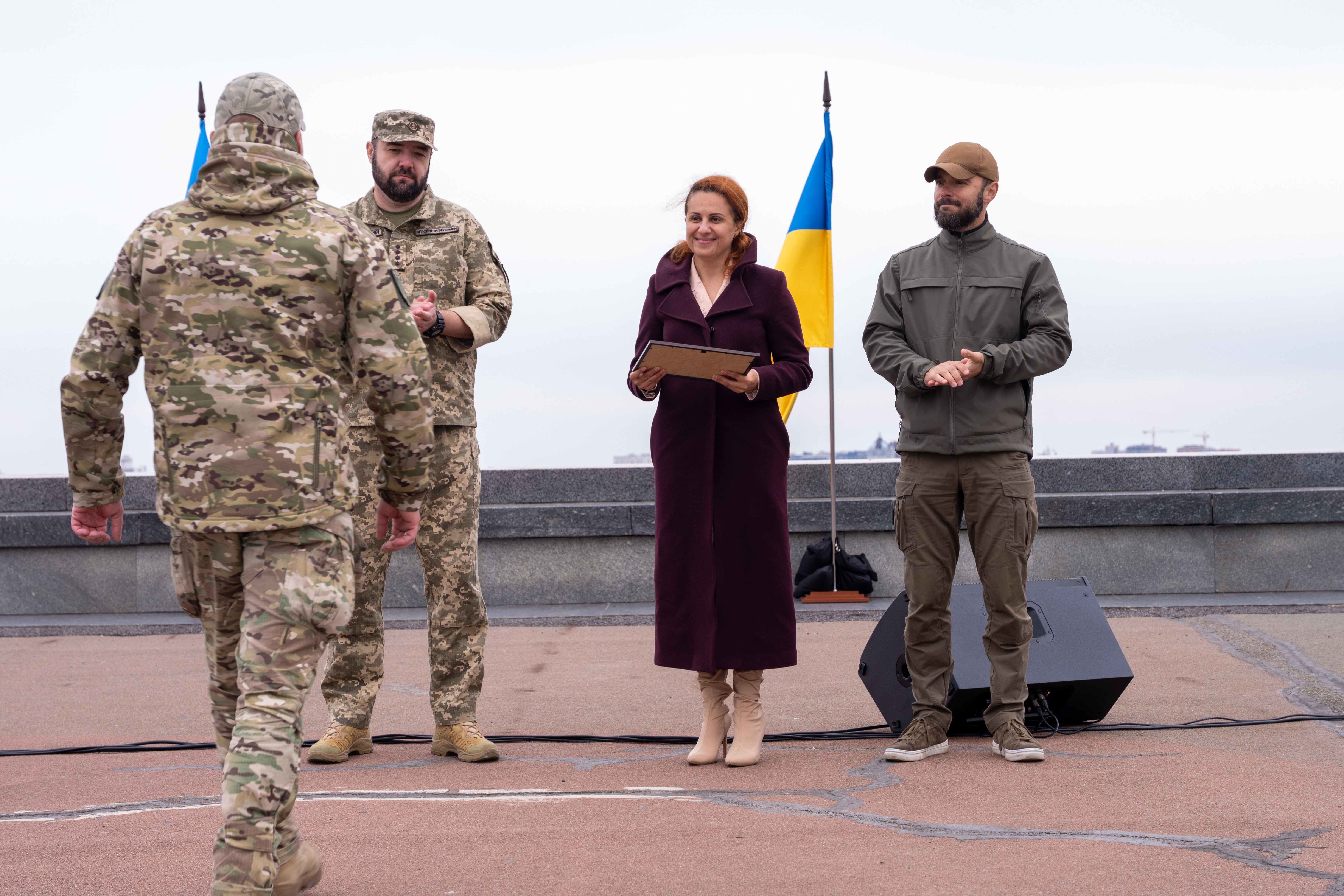 Під час урочистого заходу, що відбувся за участі Міністерки у справах ветеранів Наталії Калмикової, її першого заступника, ветерана Віктора Байдачного та ветерана, заступника голови Київської ОВА Івана Добровольського, ветеранів та ветеранок нагородили медалями «За оборону» — від імені Президента України.