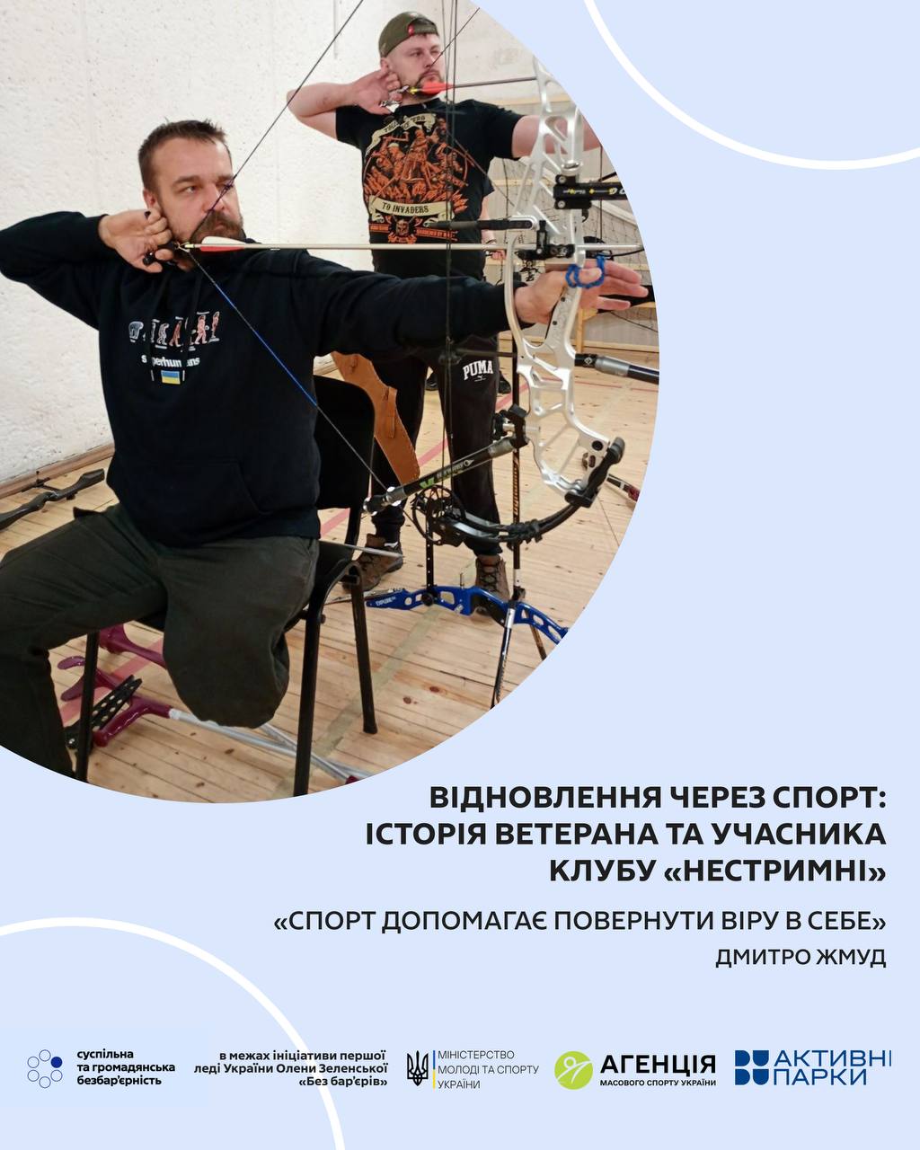 Період відновлення став переломним. Саме тоді він уперше спробував стрільбу з лука – дитячу мрію, яка здійснилася вже у зрілому віці. З грудня 2024 року Дмитро займається в адаптивному клубі «Нестримні» в місті Городок на Львівщині й зізнається: спорт для нього є фізичним відновленням і джерелом внутрішньої рівноваги.