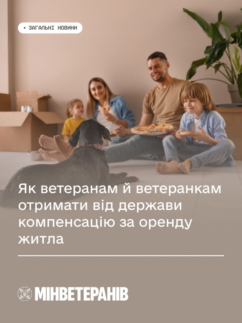 Міністерство у справах ветеранів України реалізує програму виплати грошової компенсації ветеранам та ветеранкам війни за найм (оренду) житлових приміщень.
