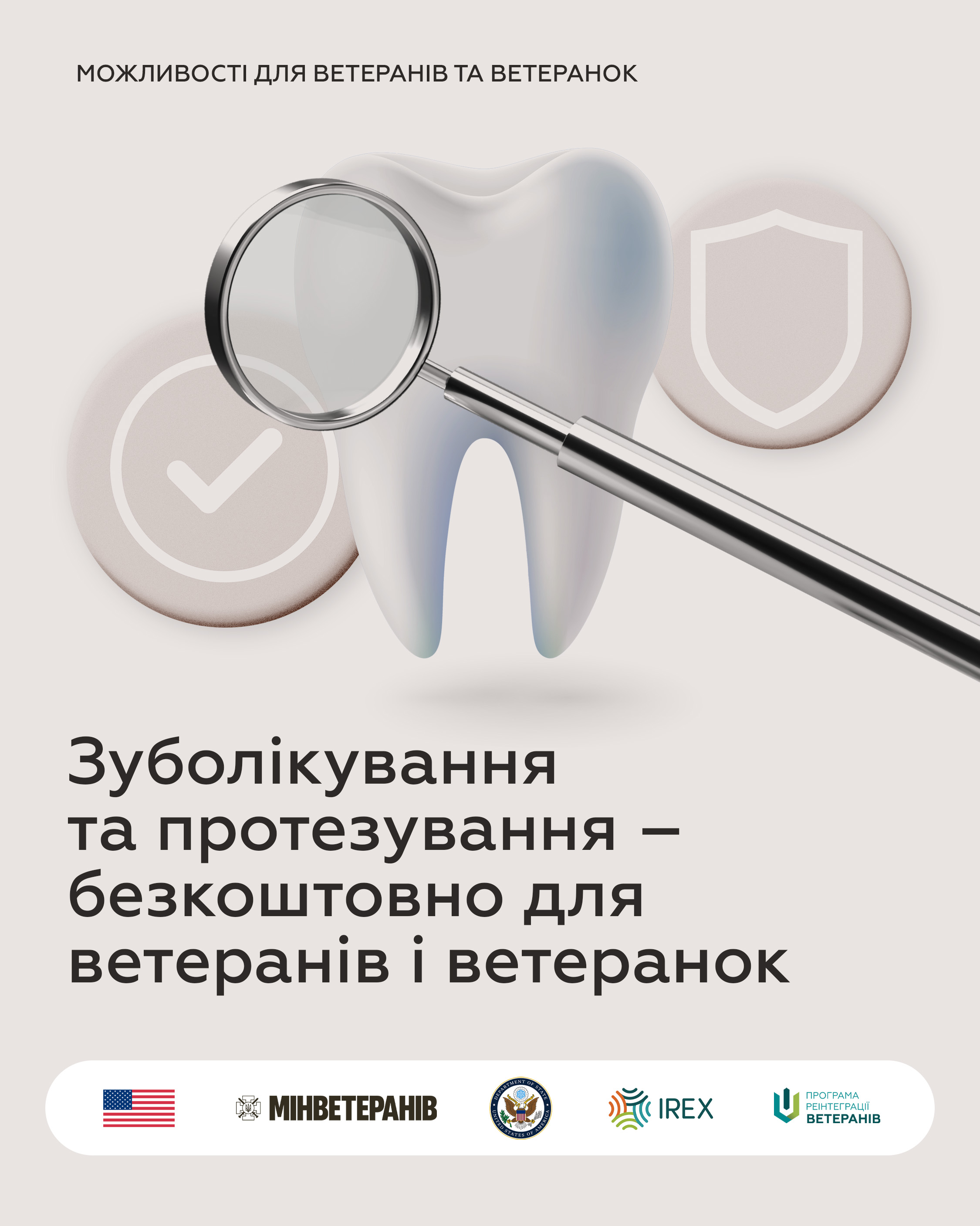 Для ветеранів та ветеранок доступні безоплатні послуги зуболікування та зубопротезування. Отримати їх можна у медзакладах, які уклали договори з НСЗУ, незалежно від місця проживання чи реєстрації.